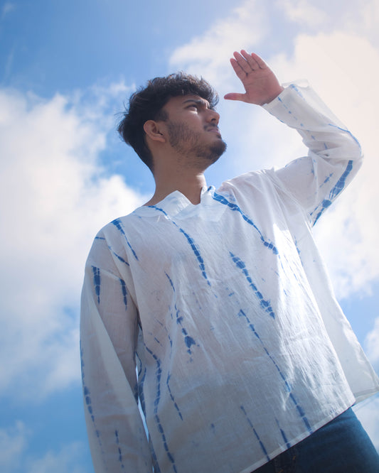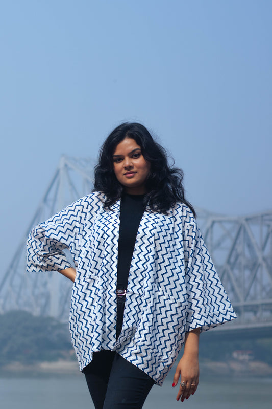 Raahi Shrug - Hand block print (white & blue) - Unisex