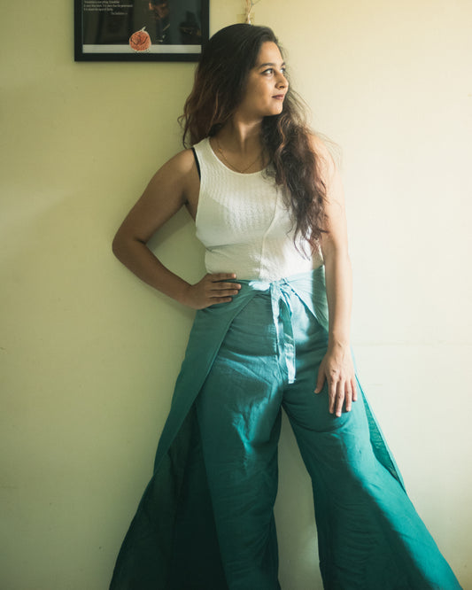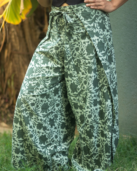 Khwabeeda Wrap around Pants - Hand block print (green)