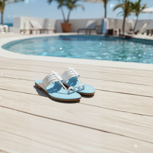 Women Kolhapuri | Sky Light Super Soft Kols by NIIRA| Stylish & Comfortable | Handmade by Local Artisans - Blue and White
