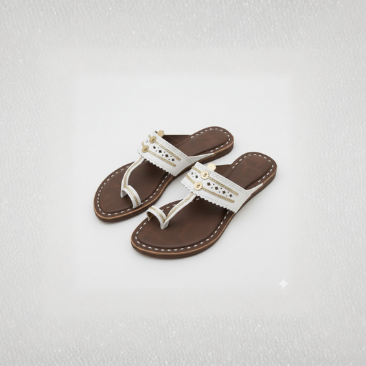 Korakari White Diamonds in the sky | Women | Kolhapuri Chappal