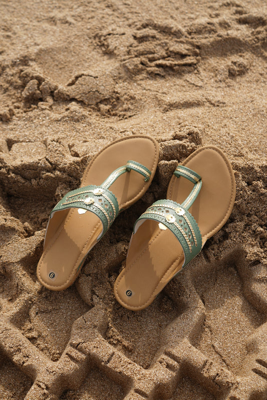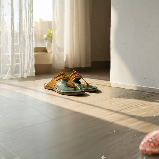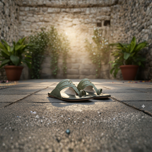 Women Kolhapuri | Soles Super Soft Kols by NIIRA| Stylish & Comfortable | Handmade by Local Artisans - Green