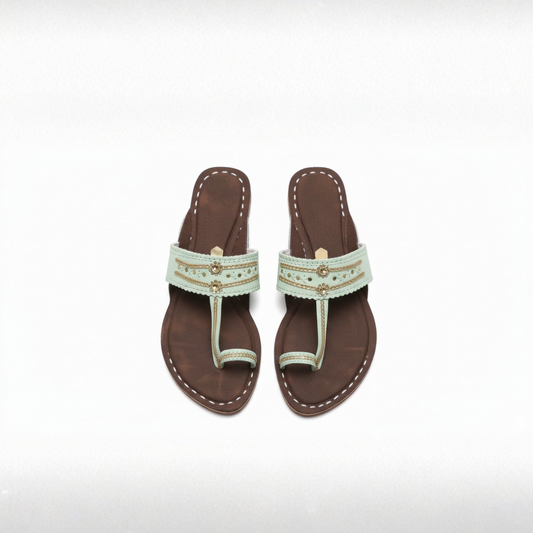Karagiri Green Fold | Women | Leather Kolhapuri Chappal