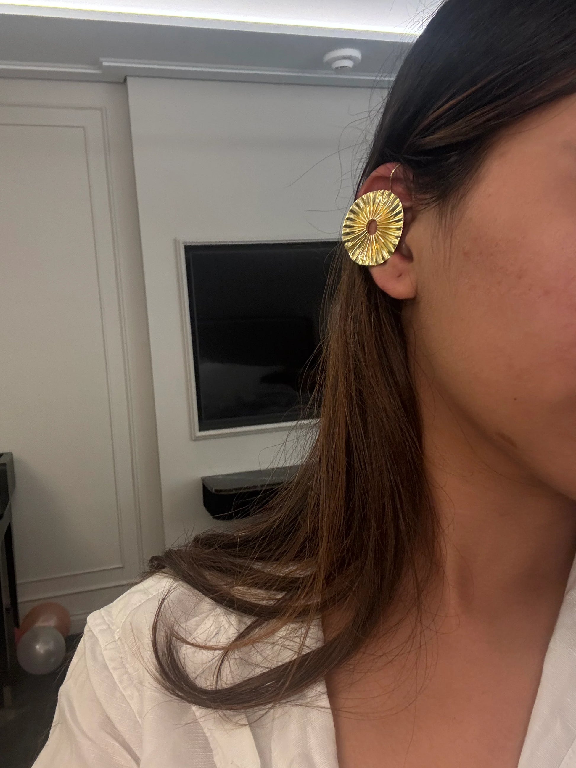 This handcrafted ear cuff is for women who lead, not follow. Sculpted from brass and dipped in gold, it wraps the ear like power in motion, no piercings needed, just presence.