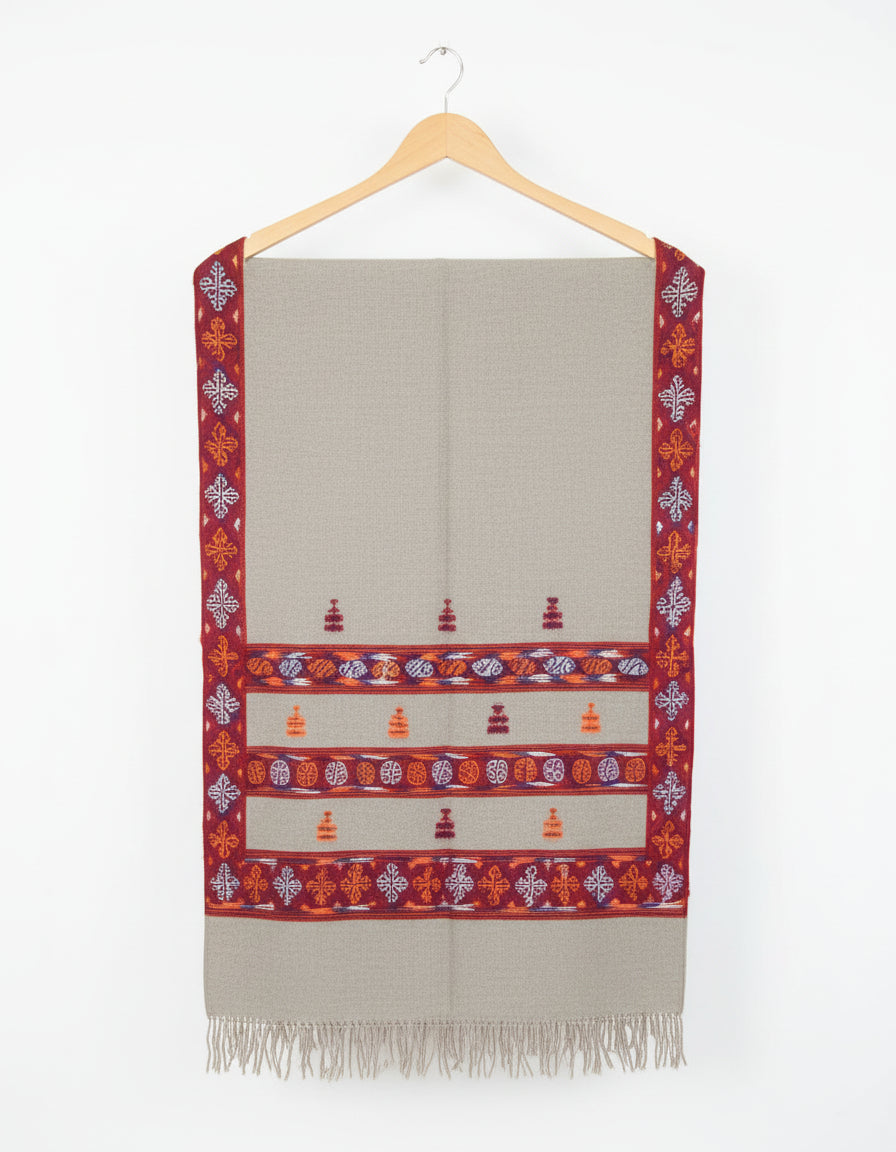 Artisanal Crafted Kinnauri Woolen Shawl for Women – Light Grey | Women
