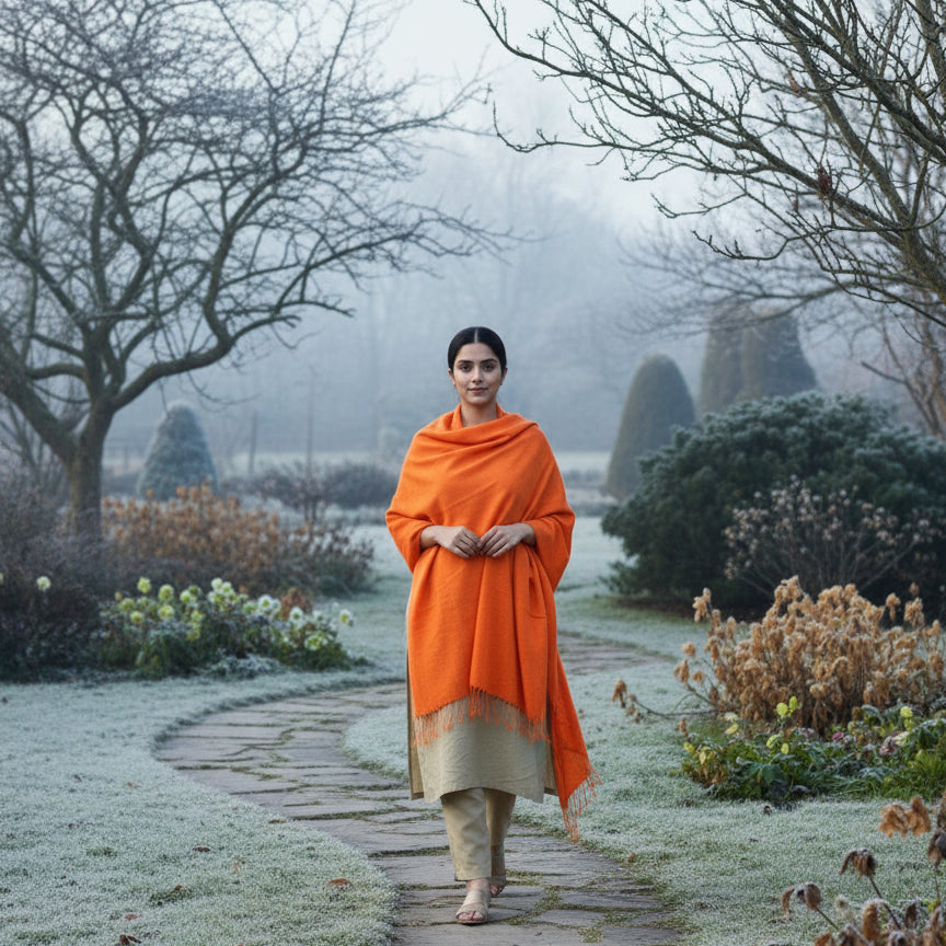 A warm, handcrafted piece rooted in traditional Indian weaving, the Kesar Handloom Shawl brings together softness, durability, and heritage. Made from fine wool with a smooth fall and subtle texture, it offers comfort without bulk. The warm kesaria tone adds a quiet richness bold enough to stand out, subtle enough to stay timeless.
