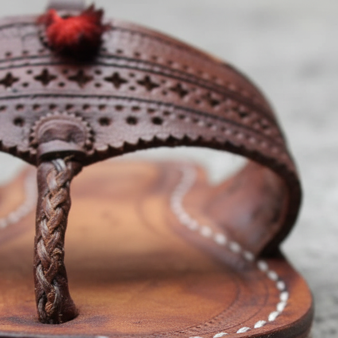 The chappal is designed with a well-cushioned sole and a thoughtful structure that supports your feet, ensuring lasting comfort whether you're walking around town or enjoying a festive day.