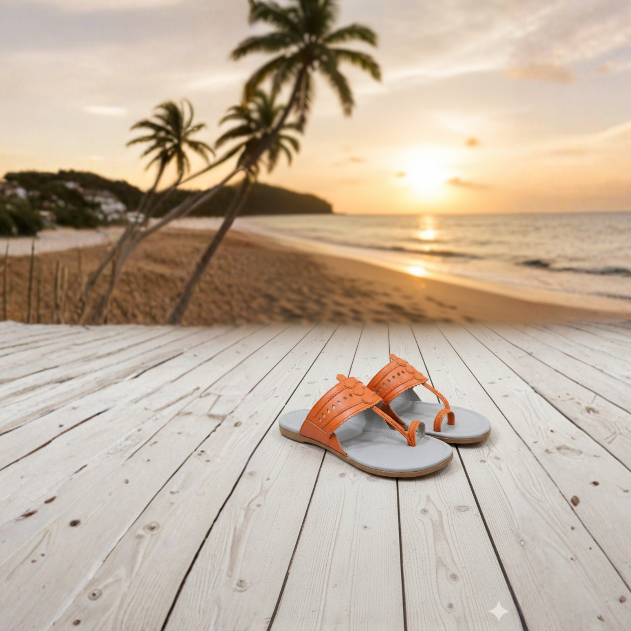 Women Kolhapuri | Soles Super Soft Kols by NIIRA| Stylish & Comfortable | Handmade by Local Artisans - Grey and Peach